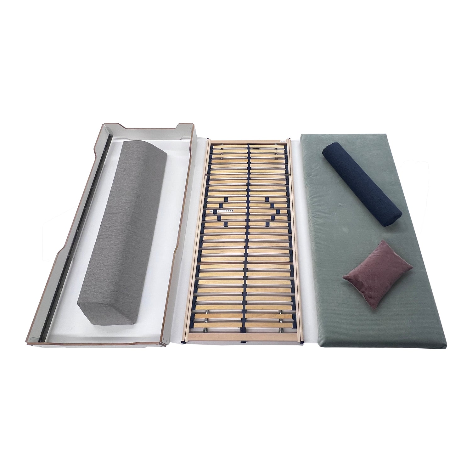 Mit diesem Set erwerben Sie 2 Stapelliegen, 2 Matratzen inkl. Bezüge Ihrer Wahl, 2 Lattenroste Ihrer Wahl und ein Rückenkissen. Dank des Rückenkissens haben Sie nicht nur ein oder zwei Betten, sondern auch eine gemütliche Sitzgelegenheit.