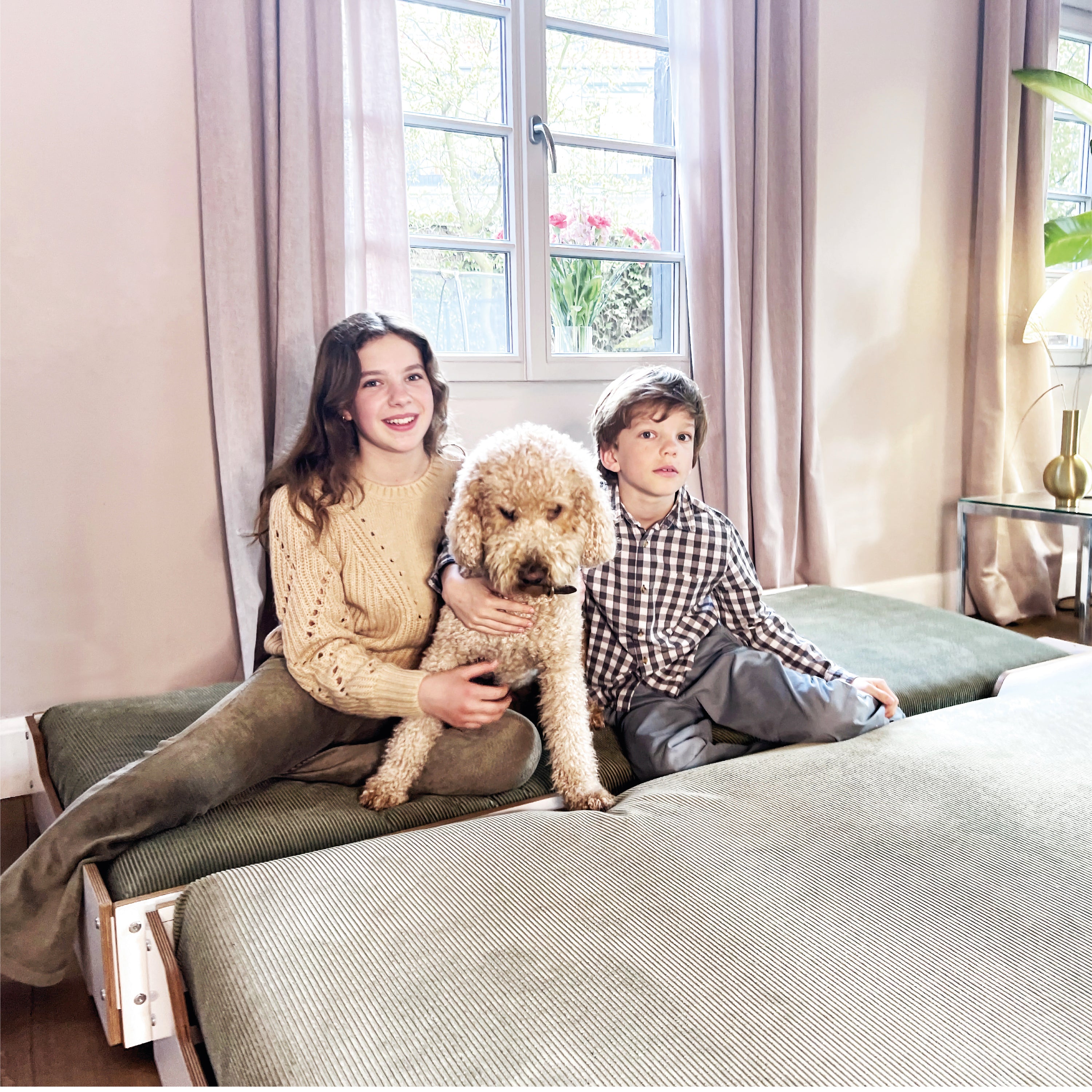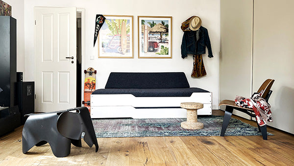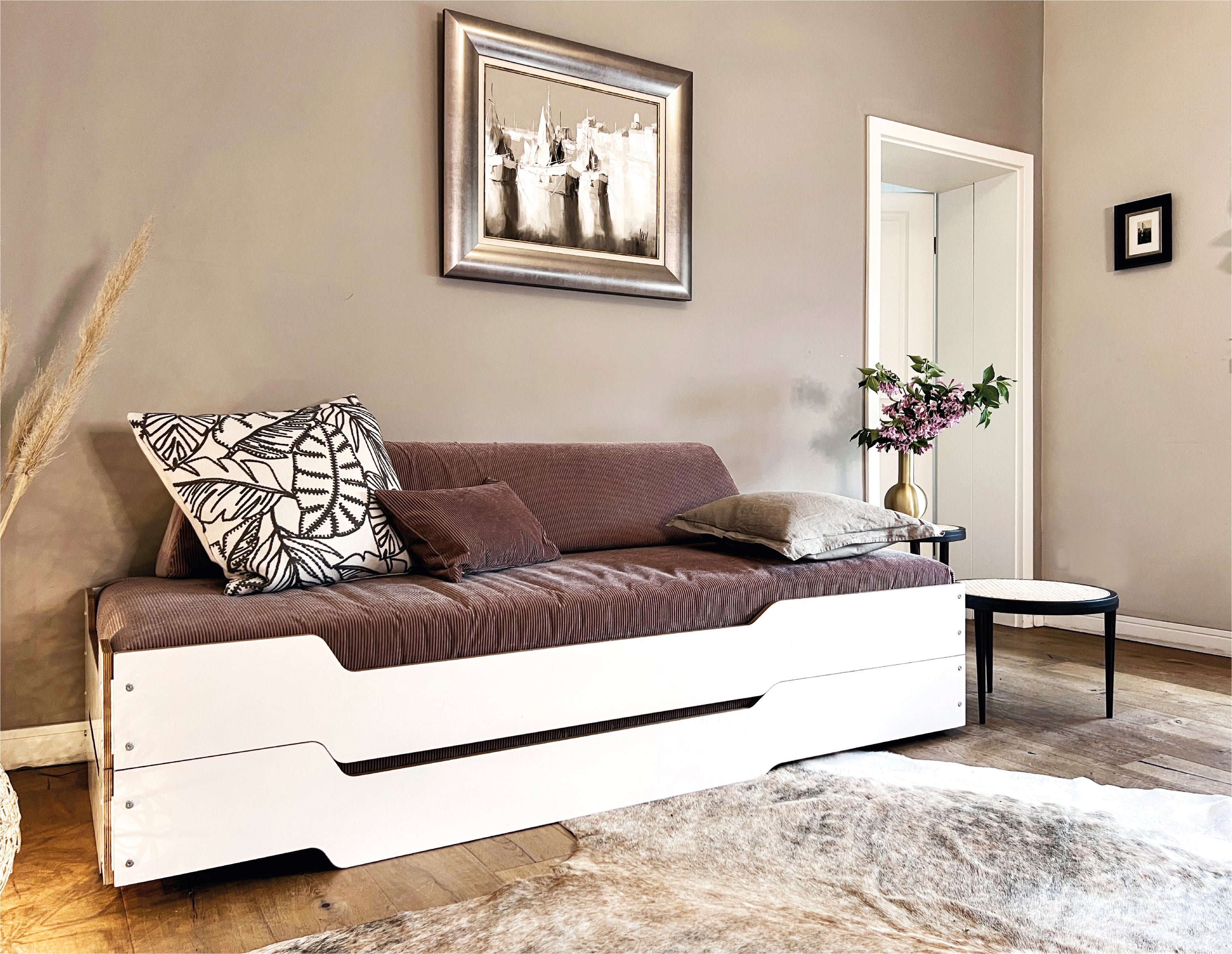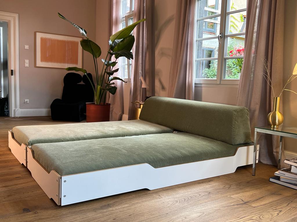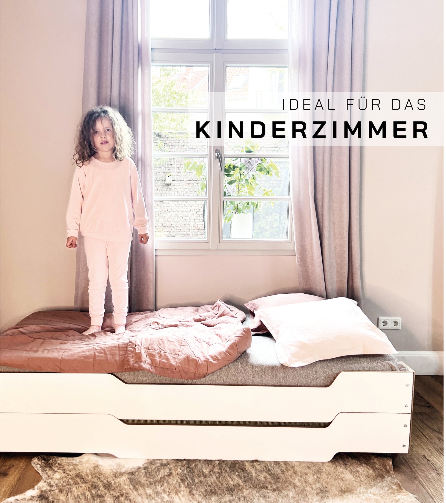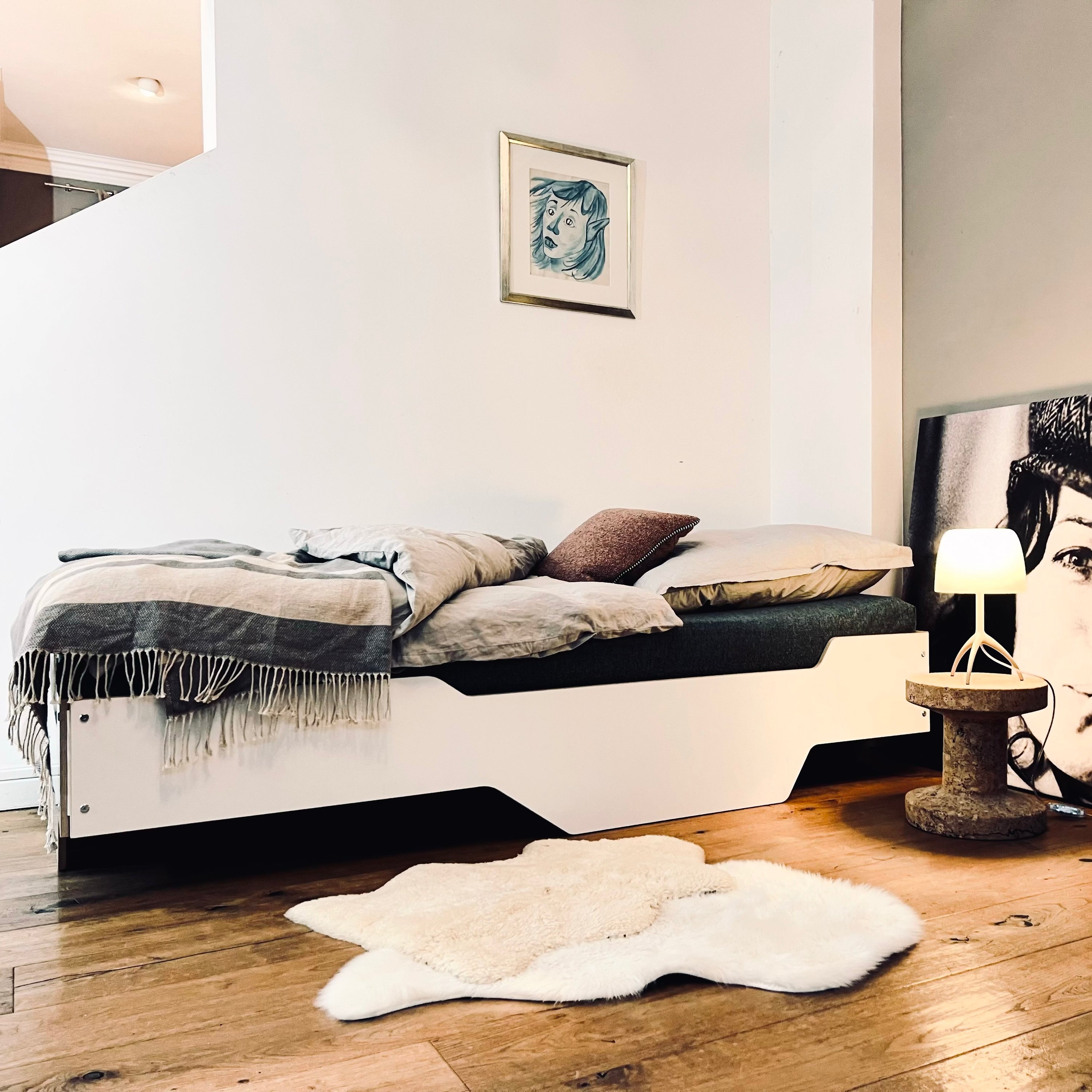 Die Stapelliege ist vielseitig einsetzbar. Egal ob im Kinderzimmer, Jugendzimmer, Gäste- oder Arbeitszimmer oder sogar als Sofa im Wohnbereich.