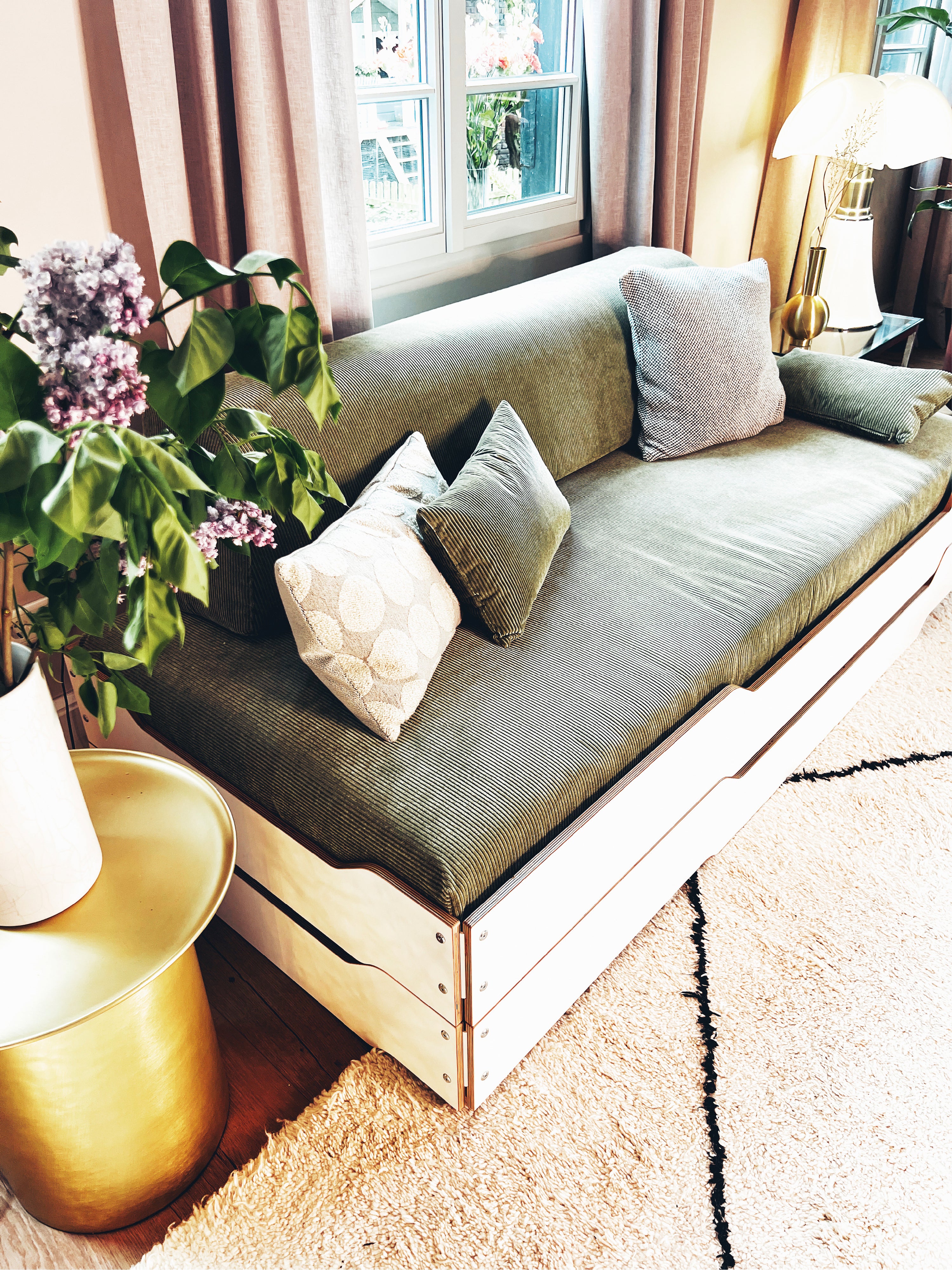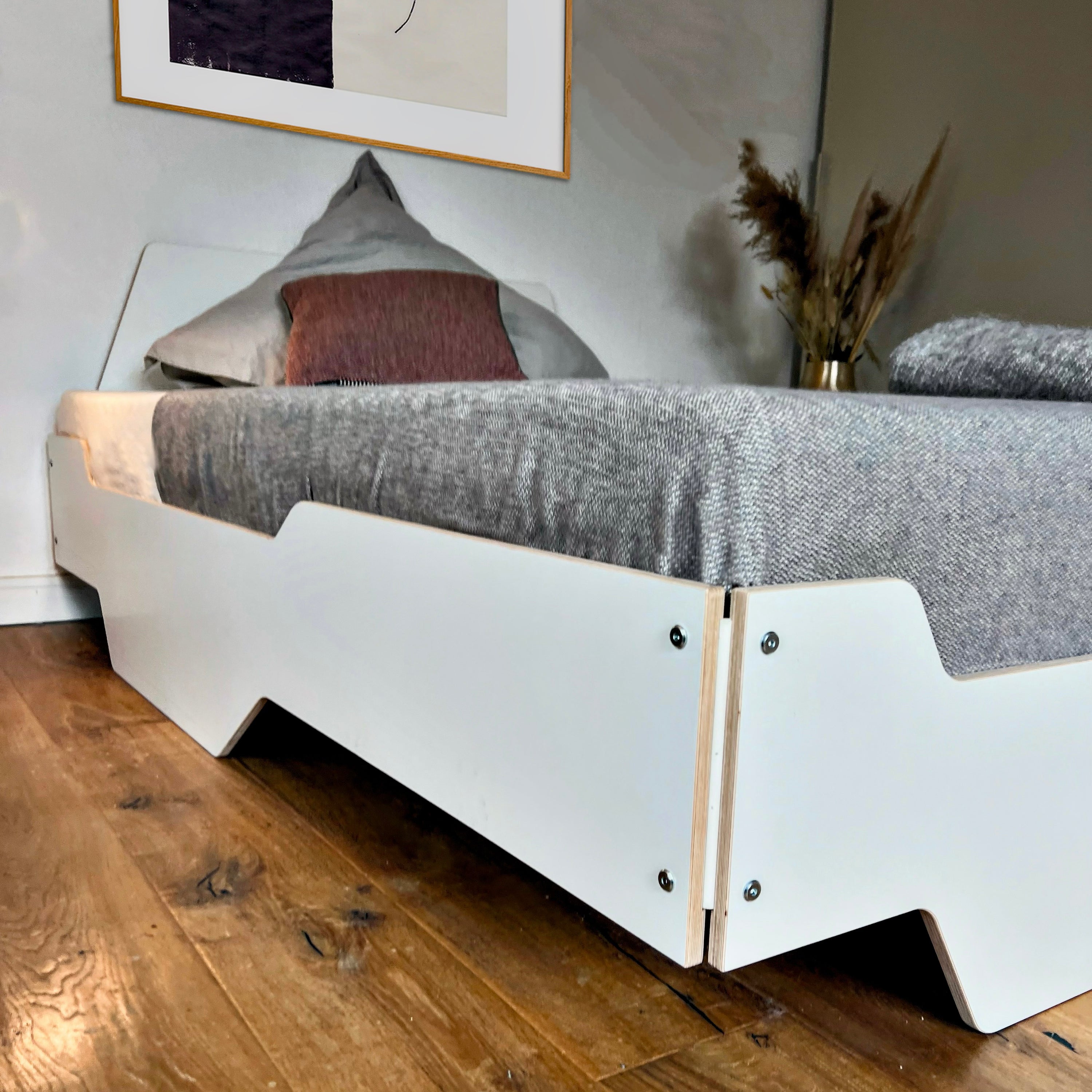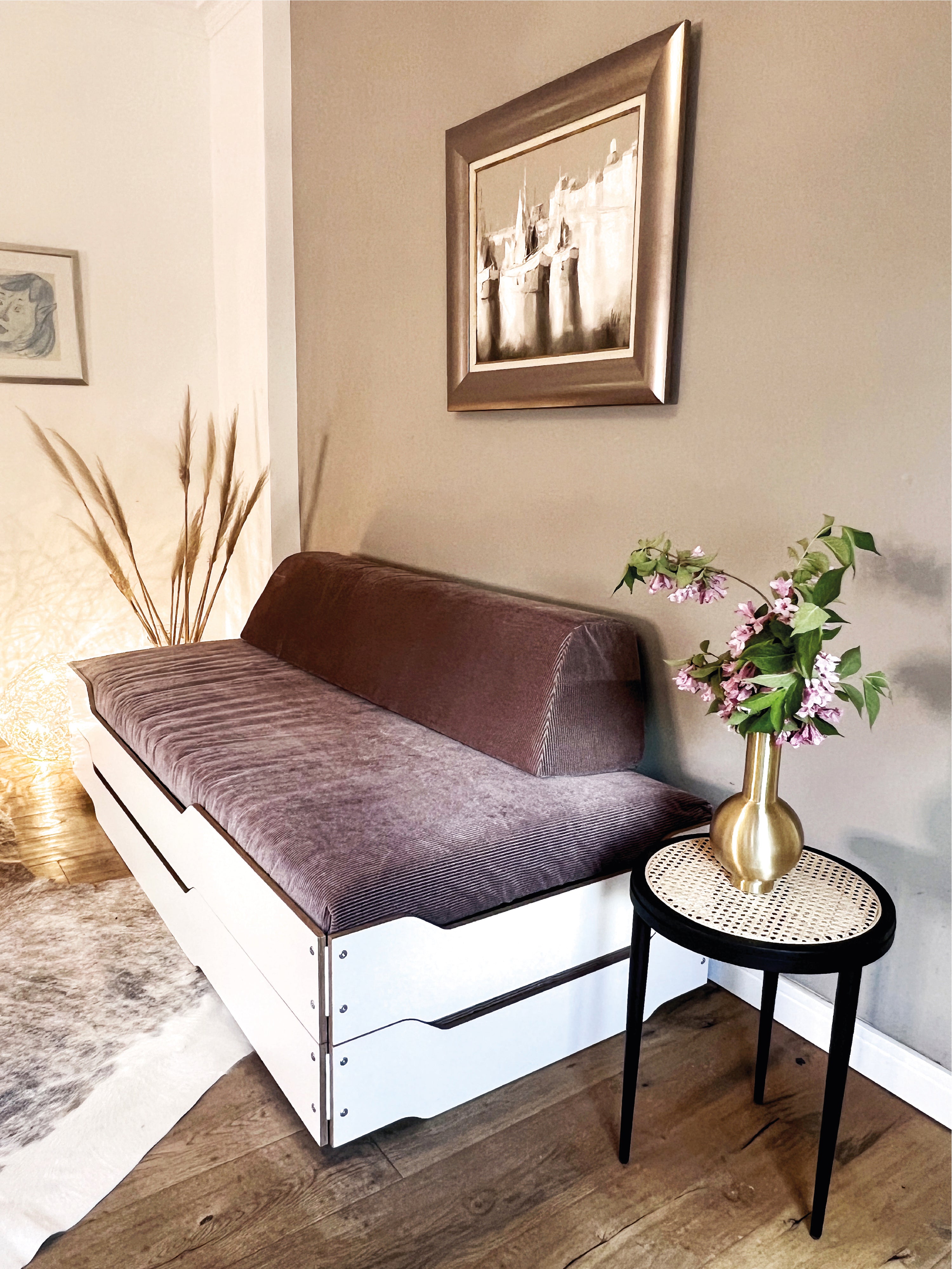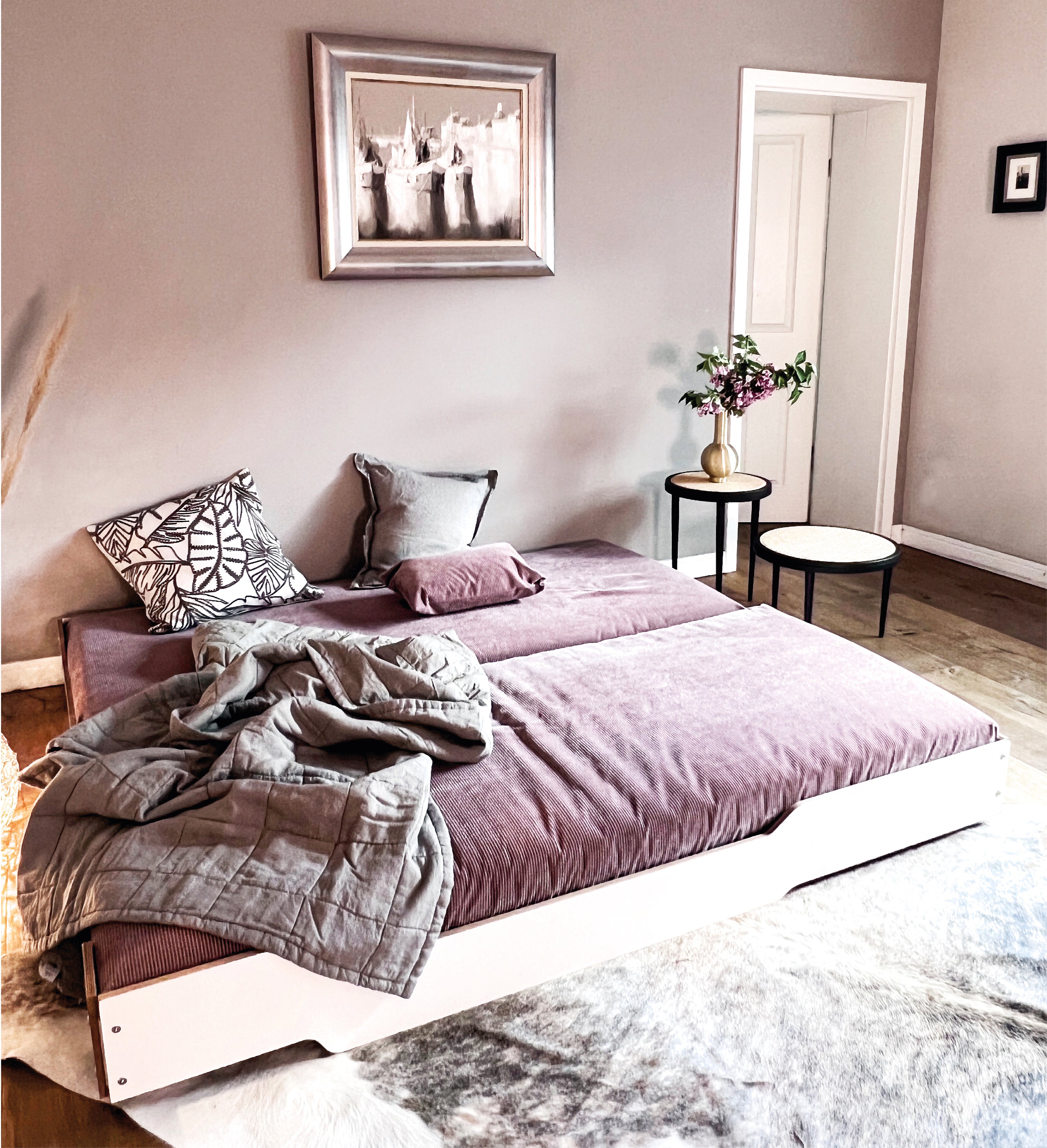Die Stapelliege ist vielseitig einsetzbar. Egal ob im Kinderzimmer, Jugendzimmer, Gäste- oder Arbeitszimmer oder sogar als Sofa im Wohnbereich.