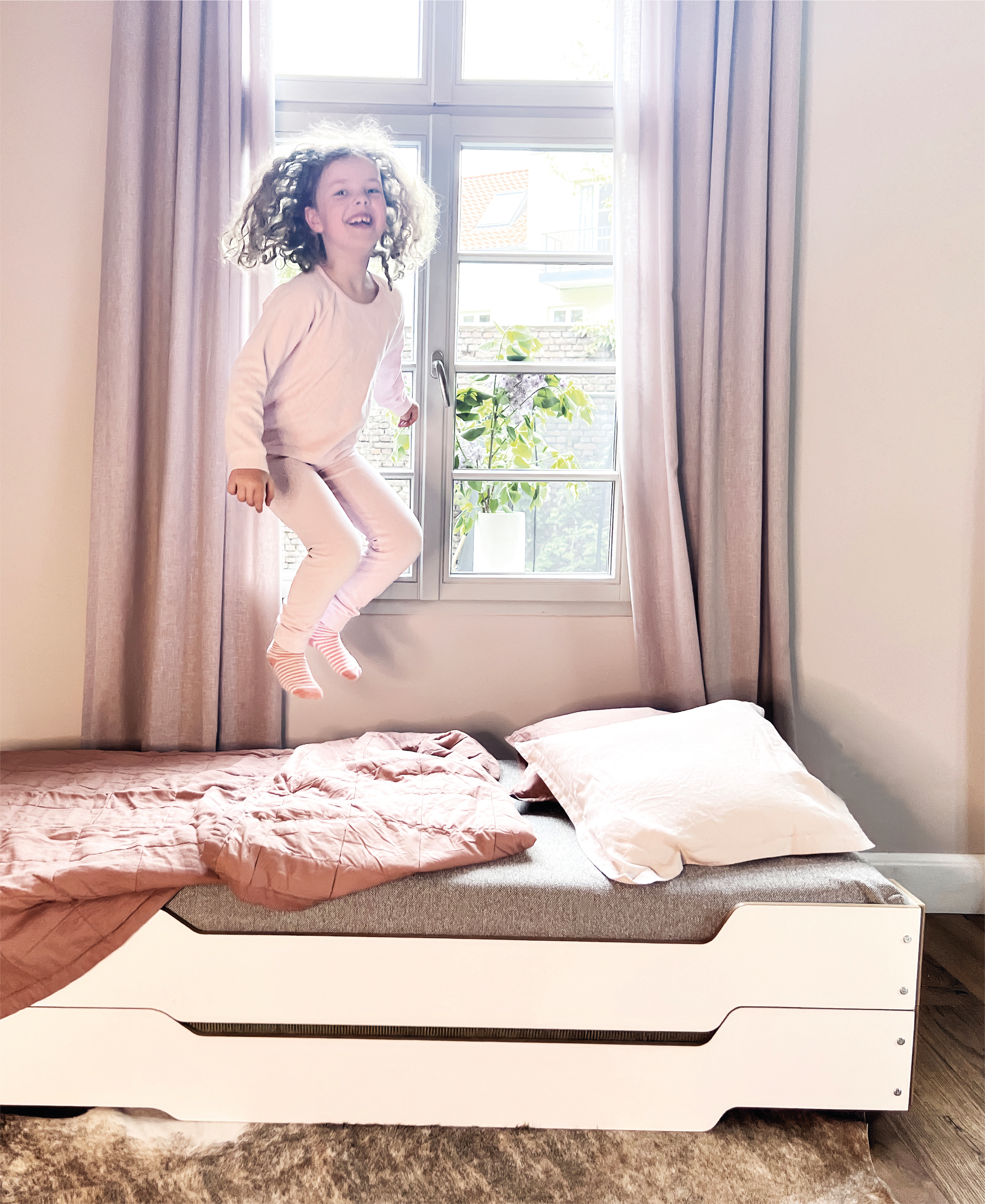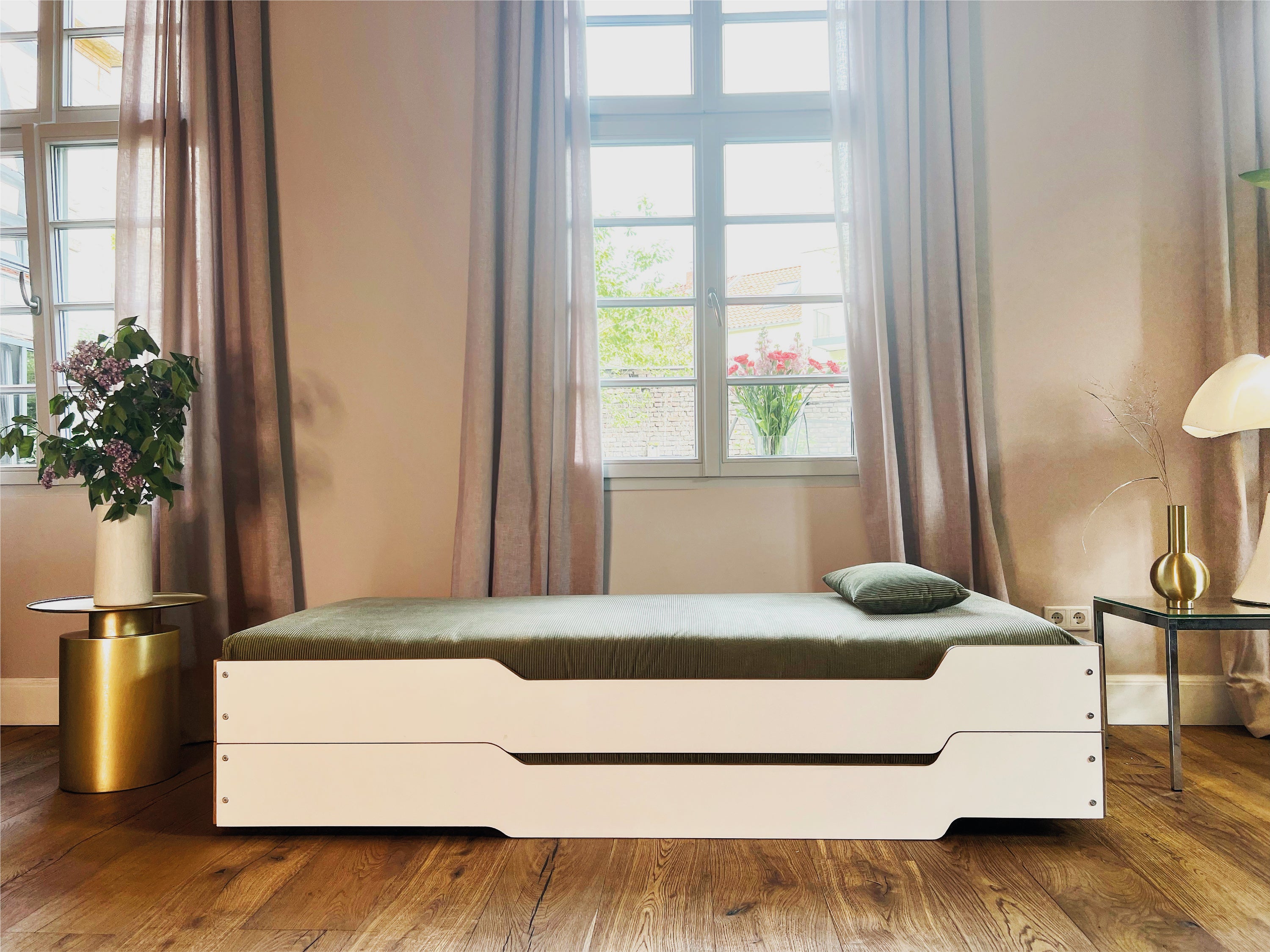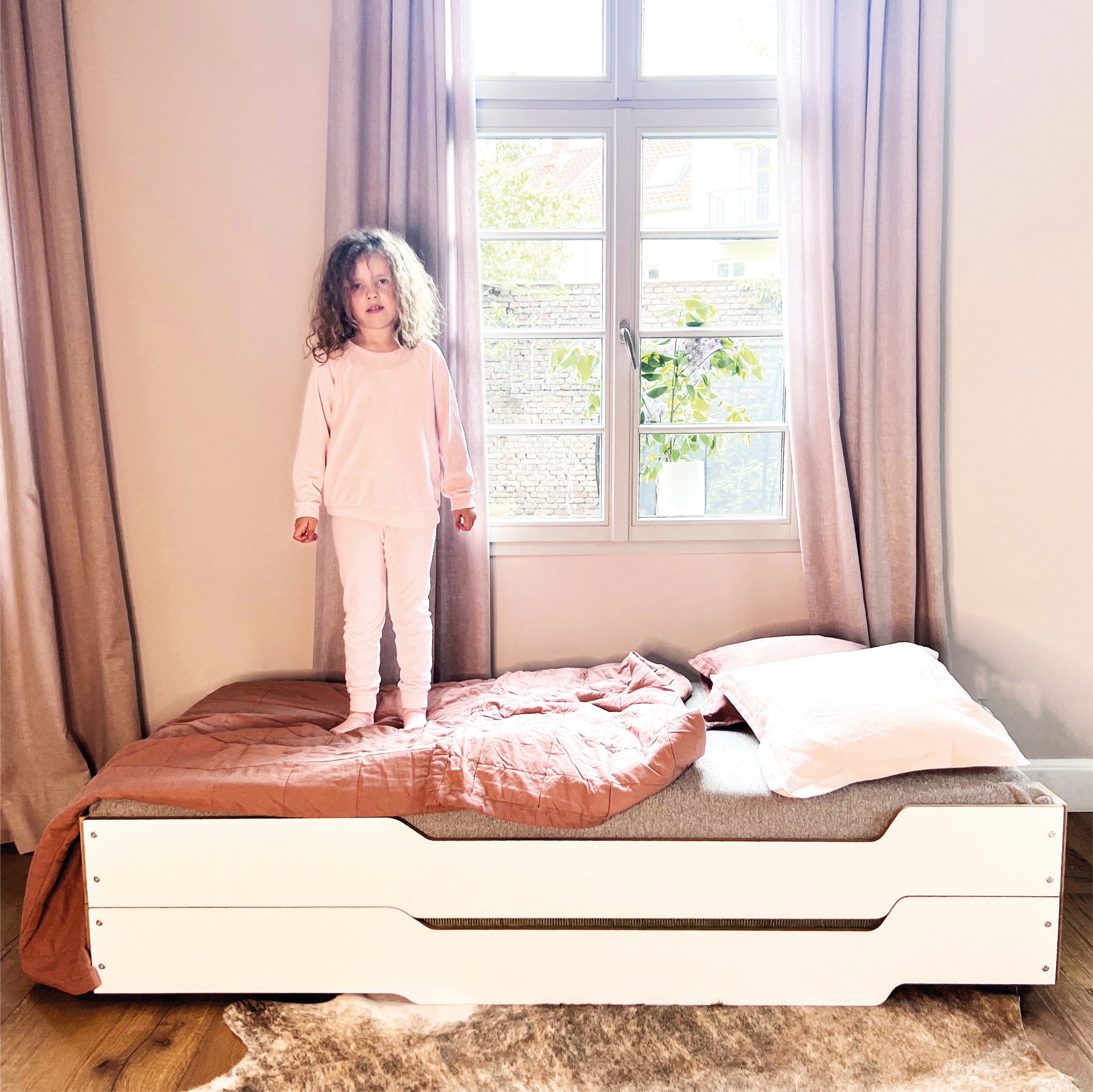 Die Stapelliege eignet sich hervorragend für das Kinderzimmer. Im Handumdrehen können Sie aus einem zwei Betten machen und somit ganz spontan Gastkinder einladen.