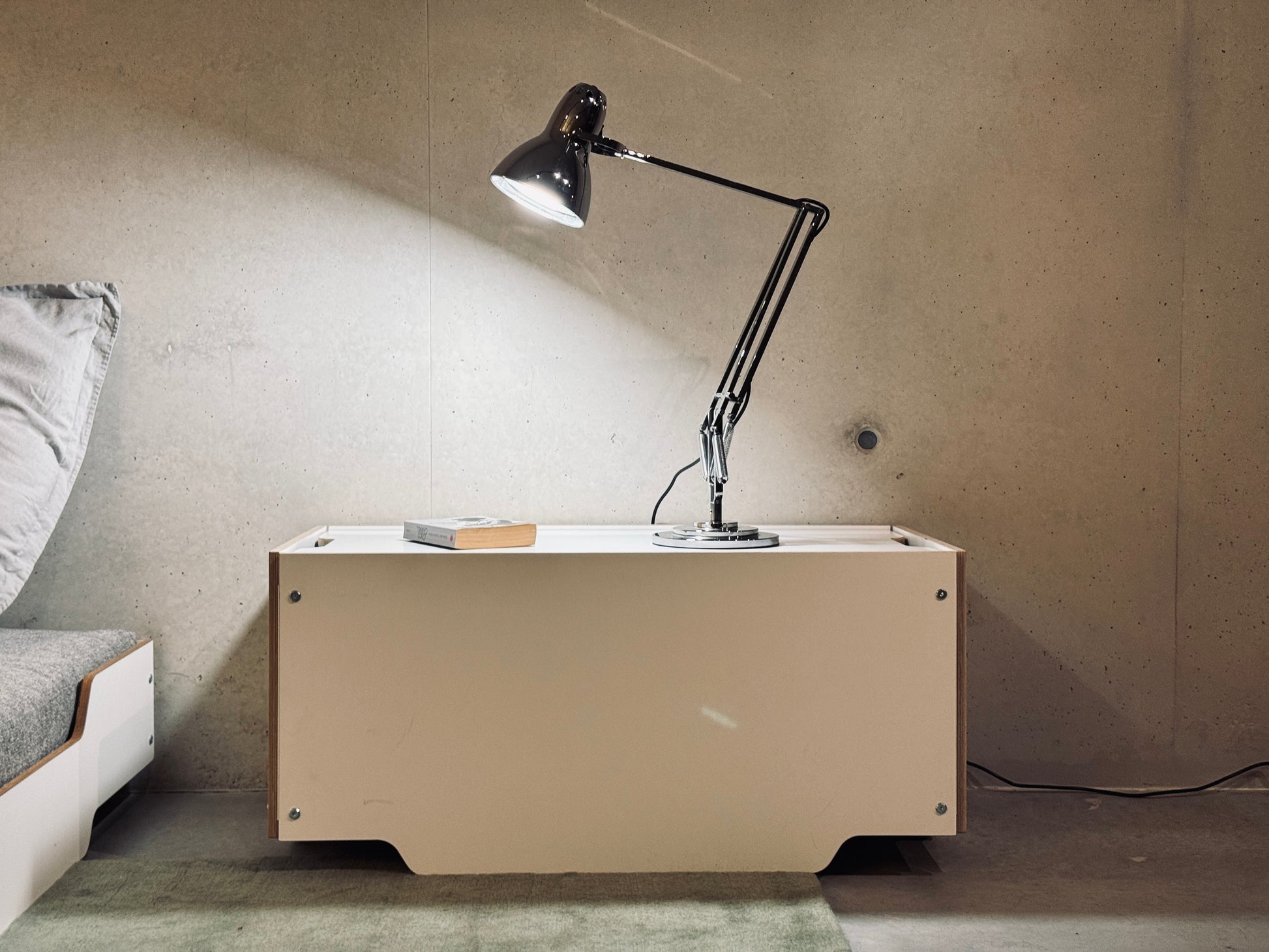 Farben: HPL weiß mit sichtbarer Schichtholz-Kante.