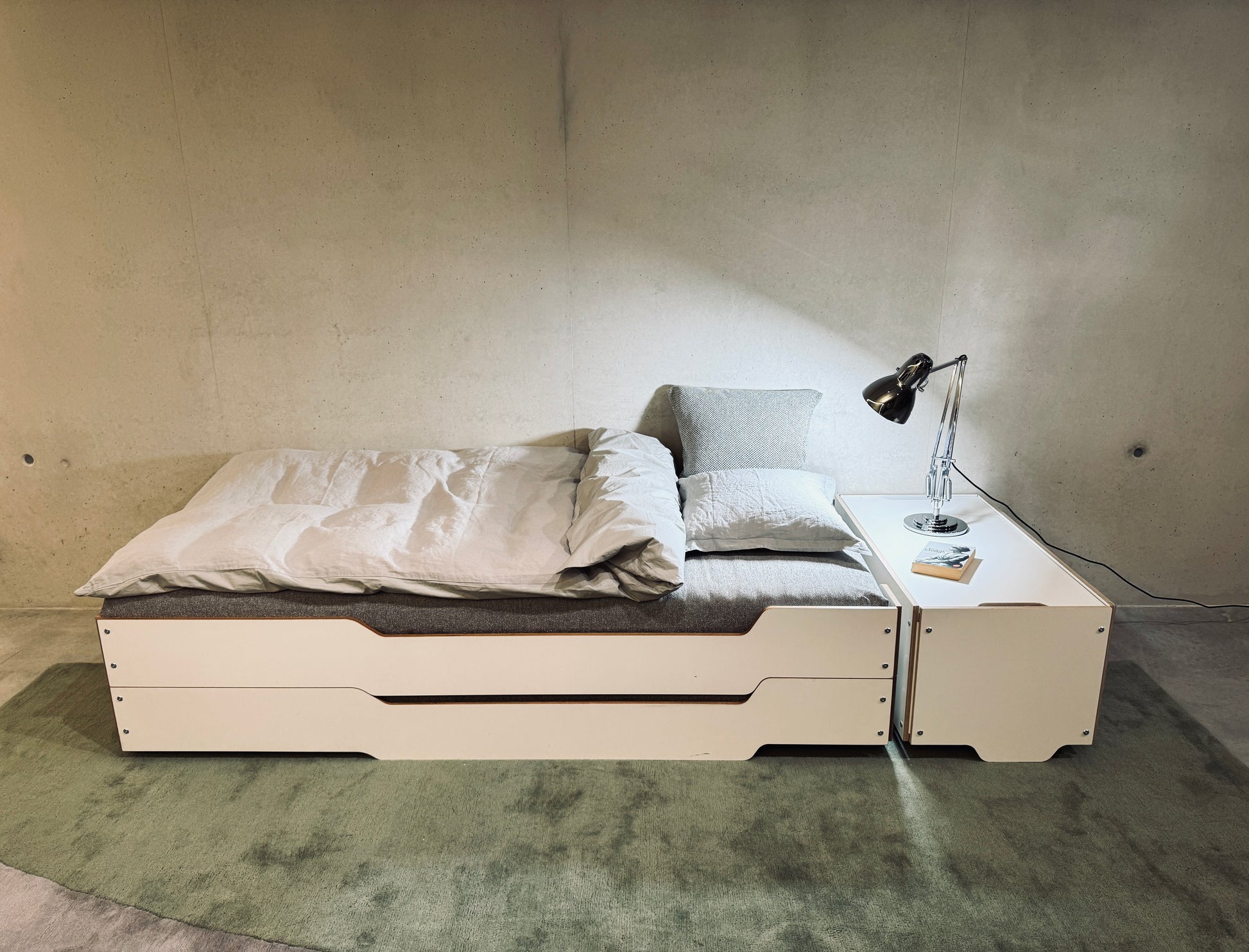 Benötigt ihr eine zusätzliche Schlafmöglichkeit ist die Stapelliege genau das richtige. Ob im Kinderzimmer, in der Studenten-WG oder im Gästezimmer lässt sich die Stapelliege leicht und bequem von einem zu zwei Betten umbauen. Sie ist ausgesprochen raumsparend, weil mehrere Elemente übereinander gestapelt werden können.